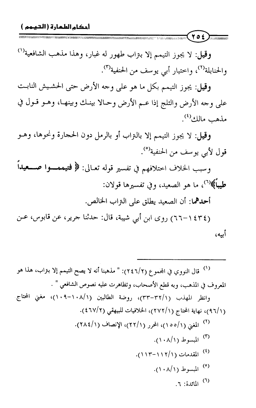 وسبب الخلاف اختلافهم في تفسير قوله تعالى: {فتيمموا صعيداً طيباً} (¬٦)، ما هو الصعيد، وفي تفسيرها قولان: