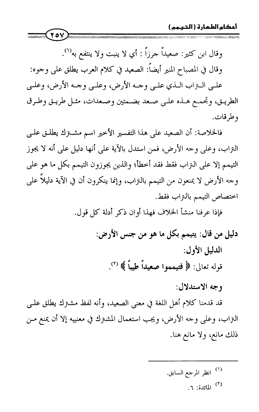 وقال في المصباح المنير أيضاً: الصعيد في كلام العرب يطلق على وجوه: