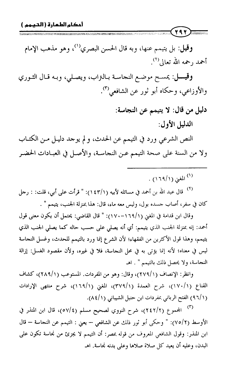(¬٢) قال عبد الله بن أحمد في مسائله لأبيه (١/ ١٤٣): " قرأت على أبي، قلت:: رجل كان في سفر، أصاب جسده بول، وليس معه ماء، قال: هذا بمنزلة الجنب، يتيمم ".
