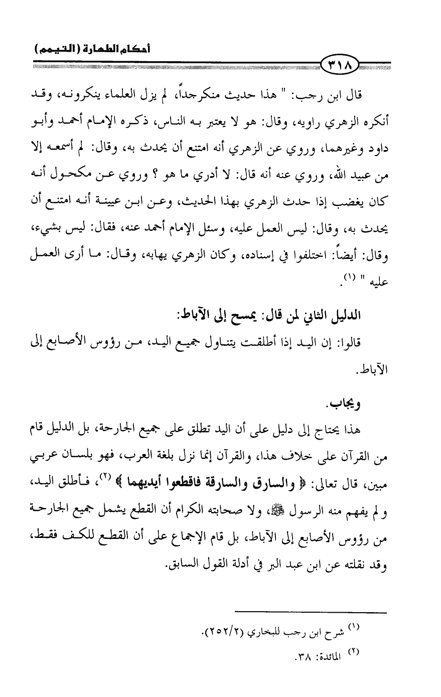 هذا يحتاج إلى دليل على أن اليد تطلق على جميع الجارحة، بل الدليل قام من القرآن على خلاف هذا، والقرآن إنما نزل بلغة العرب، فهو بلسان عربي مبين، قال تعالى: {والسارق والسارقة فاقطعوا أيديهما} (¬٢)، فأطلق اليد، ولم يفهم منه الرسول - صلى الله عليه وسلم -، ولا صحابته الكرام أن القطع يشمل جميع الجارحة من رؤوس الأصابع إلى الآباط، بل قام الإجماع على أن القطع للكف فقط، وقد نقلته عن ابن عبد البر في أدلة القول السابق.