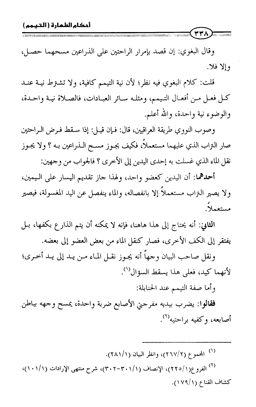 (¬٢) الفروع (١/ ٢٢٥)، الإنصاف (١/ ٣٠١ - ٣٠٢)، شرح منتهى الإرادات (١/ ١٠١)، كشاف القناع (١/ ١٧٩).