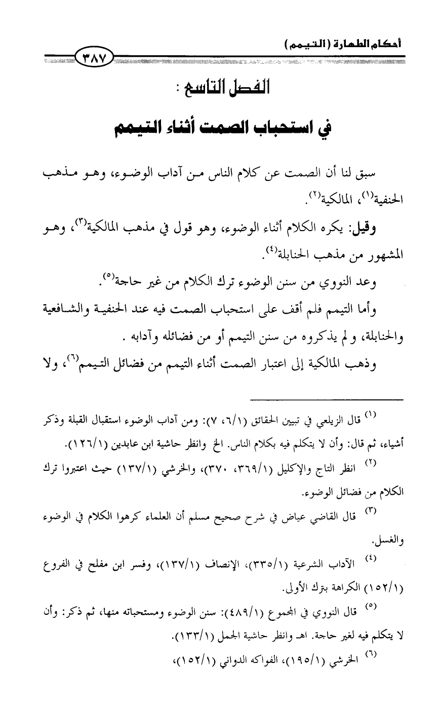 (¬٢) انظر التاج والإكليل (١/ ٣٦٩، ٣٧٠)، والخرشي (١/ ١٣٧) حيث اعتبروا ترك الكلام من فضائل الوضوء.