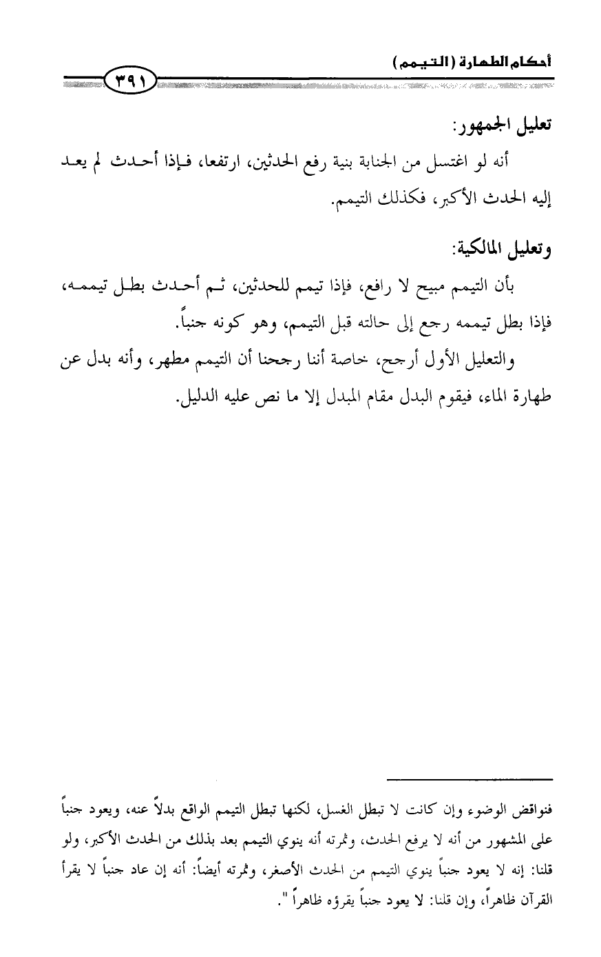 والتعليل الأول أرجح، خاصة أننا رجحنا أن التيمم مطهر، وأنه بدل عن طهارة الماء، فيقوم البدل مقام المبدل إلا ما نص عليه الدليل.