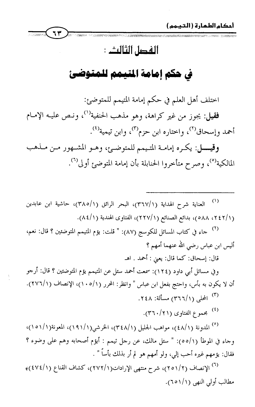 (¬٦) الإنصاف (٢/ ٢٥١)، شرح منتهى الإرادات (١/ ٢٧٢)، كشاف القناع (١/ ٤٧٤)، مطالب أولي النهى (١/ ٦٥١).