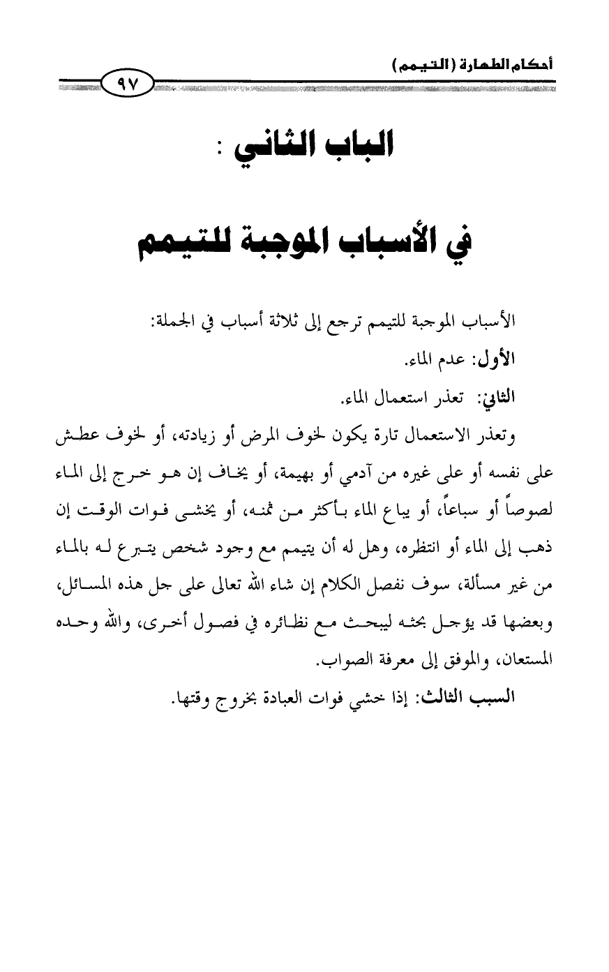 الأسباب الموجبة للتيمم ترجع إلى ثلاثة أسباب في الجملة: