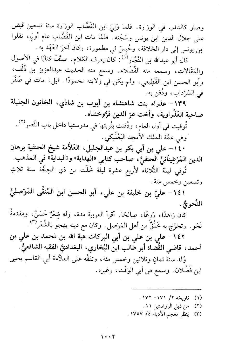 142 - عليّ بْن علي بْن أَبِي البركات هبة اللَّه بْن مُحَمَّد بْن عليّ بْن أَحْمَد. قاضي القُضاة، أبو طَالِب ابن البخاري، البغدادي، الفقيه الشافعي. [المتوفى: 593 هـ]