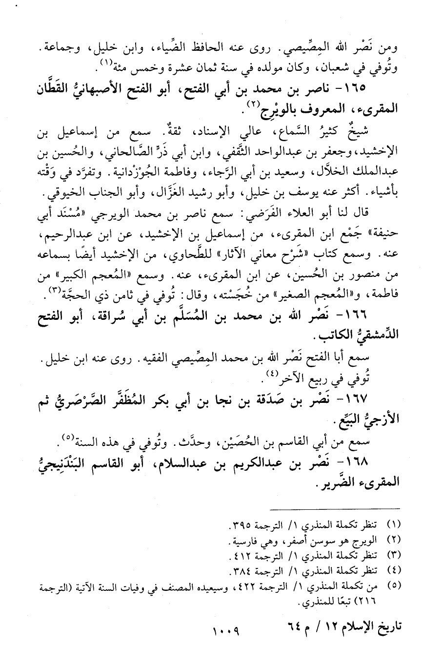 165 - ناصر بْن مُحَمَّد بْن أَبِي الفتح، أبو الفتح الإصبهاني، القطّان، الْمُقْرِئ، المعروف بالويْرِج. [المتوفى: 593 هـ]