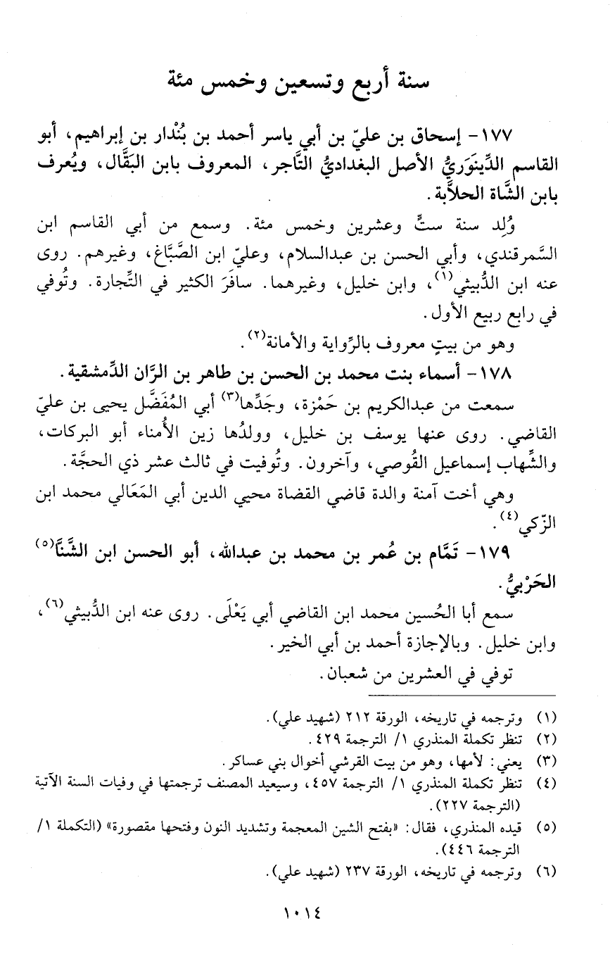 179 - تمّام بْن عُمَر بْن مُحَمَّد بْن عَبْد اللَّه، أبو الحسن ابن الشنا الحربي. [المتوفى: 594 هـ]