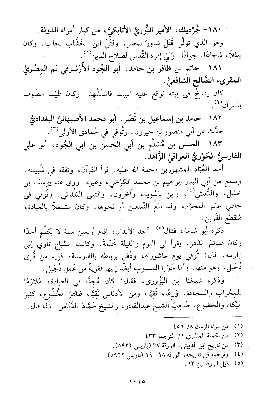 181 - حاتم بْن ظافر بْن حامد، أبو الْجُود الأُرْسُوفيّ، ثمّ المصريّ، الْمُقْرِئ الصالح الشافعي. [المتوفى: 594 هـ]