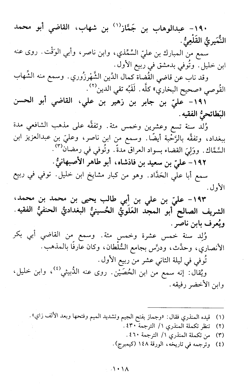 191 - عليّ بْن جَابِر بْن زهير بْن عليّ. القاضي أبو الْحَسَن البطائحيّ، الفقيه. [المتوفى: 594 هـ]