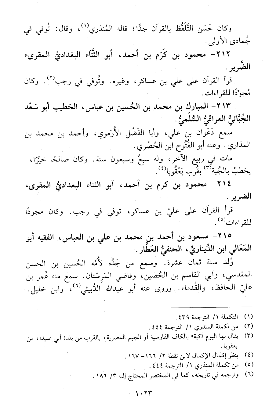 214 - محمود بْن كَرَم بْن أَحْمَد، أبو الثّناء الْبَغْدَادِيّ، الْمُقْرِئ، الضّرير. [المتوفى: 594 هـ]