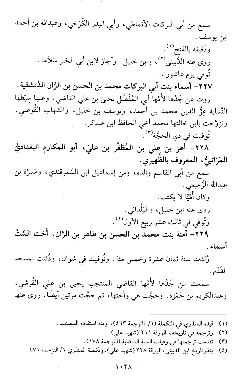 228 - أعزّ بْن عليّ بْن المظفَّر بْن عليّ، أبو المكارم الْبَغْدَادِيّ، المراتبيّ، المعروف بالظَّهيريّ. [المتوفى: 595 هـ]