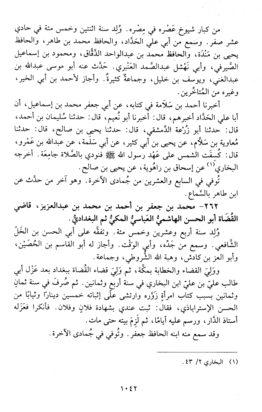 262 - مُحَمَّد بْن جَعْفَر بْن أَحْمَد بْن مُحَمَّد بْن عَبْد الْعَزِيز. قاضي القُضَاة أبو الْحَسَن الهاشميّ، العبّاسيّ، المكي، ثُمَّ البغداديّ. [المتوفى: 595 هـ]