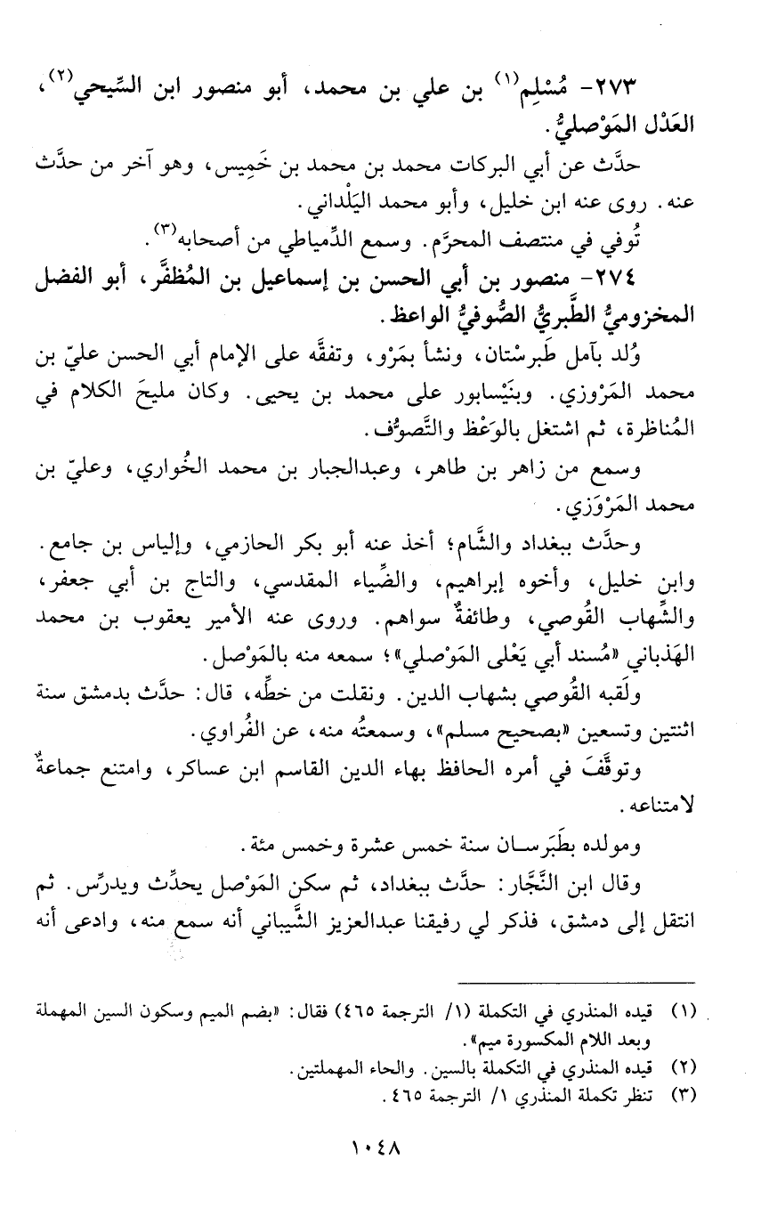 273 - مُسْلِم بْن عليّ بْن مُحَمَّد، أبو مَنْصُور ابن السّيْحيّ، العدل المَوْصِليّ. [المتوفى: 595 هـ]