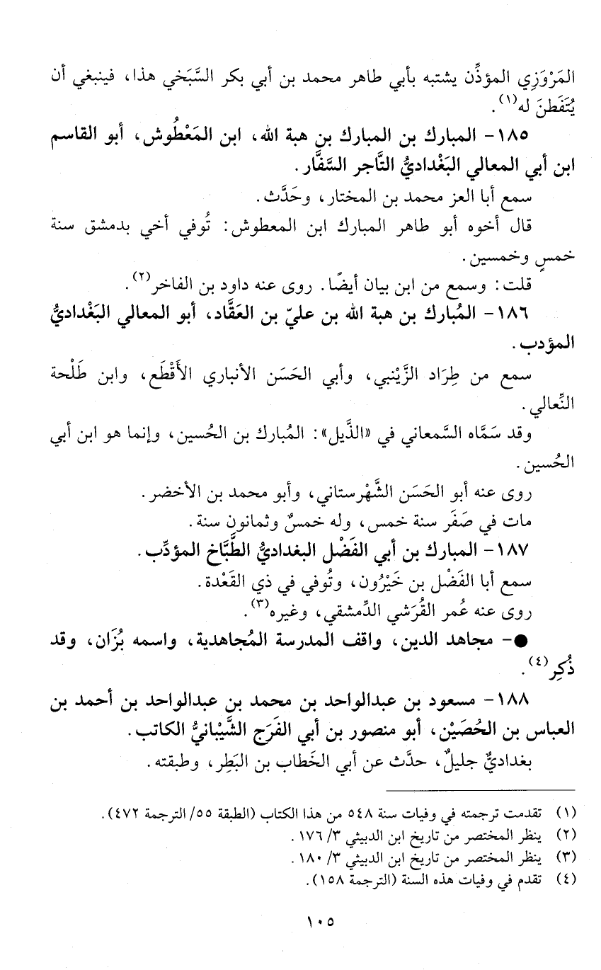 185 - المبارك بْن المبارك بن هبة الله، ابن المعطوش، أبو القَاسِم بْن أبي المعالي البغداديّ التّاجر السّفّار. [المتوفى: 555 هـ]