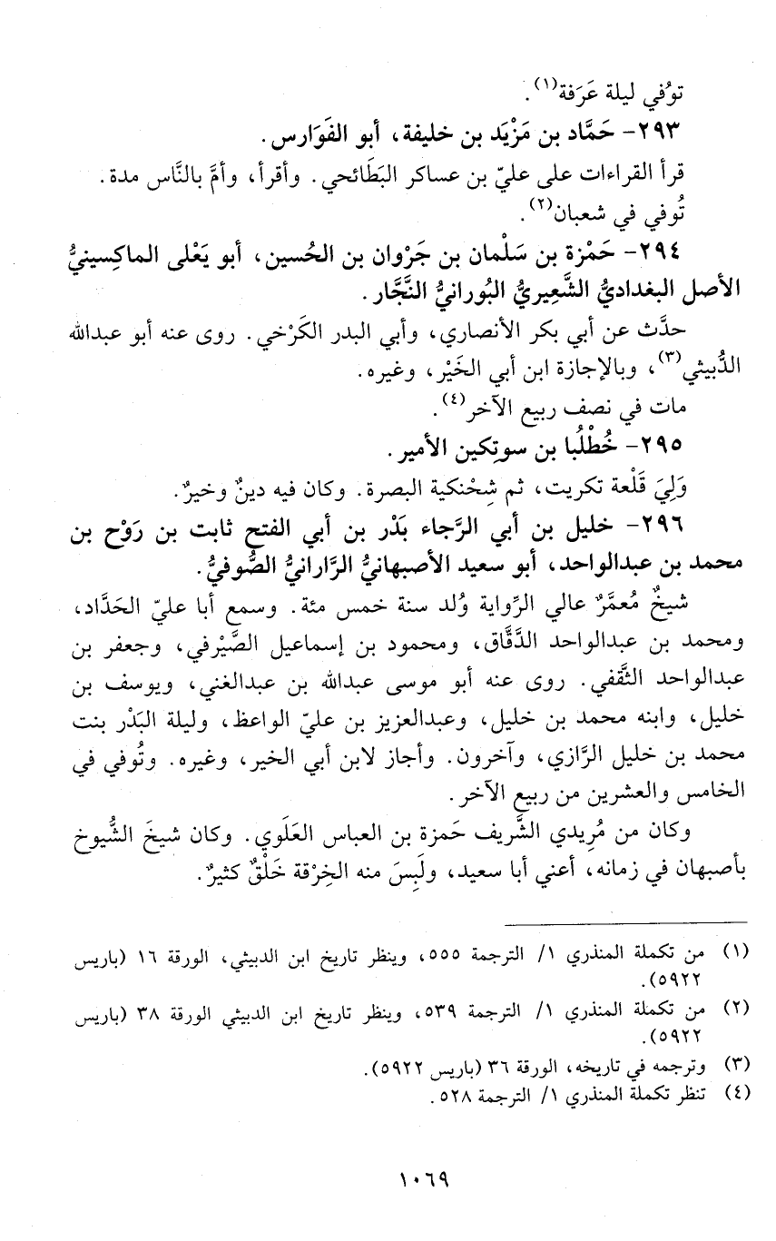 296 - خليل بْن أَبِي الرجاء بدر بْن أَبِي الفتح ثابت بْن رَوْح بْن مُحَمَّد بْن عَبْد الواحد، أبو سَعِيد الإصبهانيّ، الرّارانيّ، الصُّوفيّ. [المتوفى: 596 هـ]