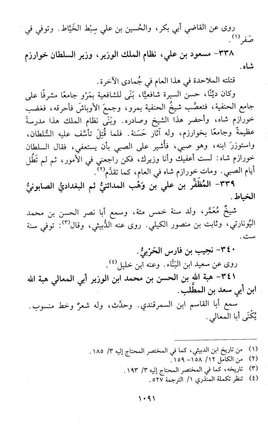 338 - مَسْعُود بْن عليّ، نظام المُلْك الوزير، [المتوفى: 596 هـ]