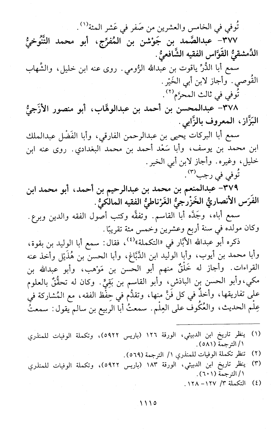 377 - عَبْد الصمد بْن جوشن بْن المفرّج، أبو مُحَمَّد التَّنُوخيّ، الدَّمشقيّ، القوّاس، الفقيه الشافعيّ. [المتوفى: 597 هـ]