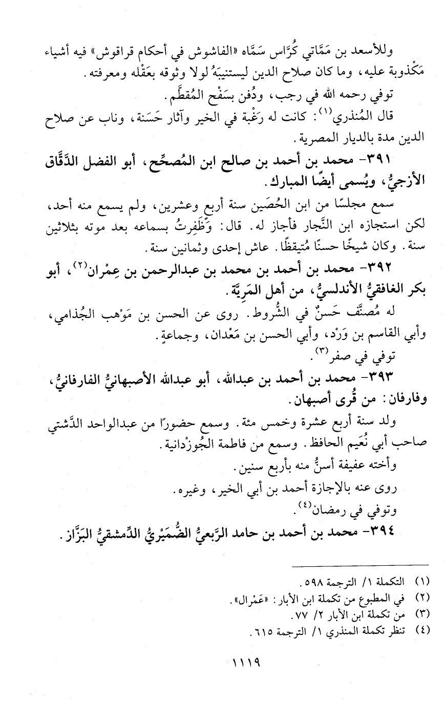 392 - مُحَمَّد بْن أَحْمَد بْن مُحَمَّد بْن عَبْد الرَّحْمَن بْن عِمران، أبو بَكْر الغافقيّ، الأندلسيّ، [المتوفى: 597 هـ]