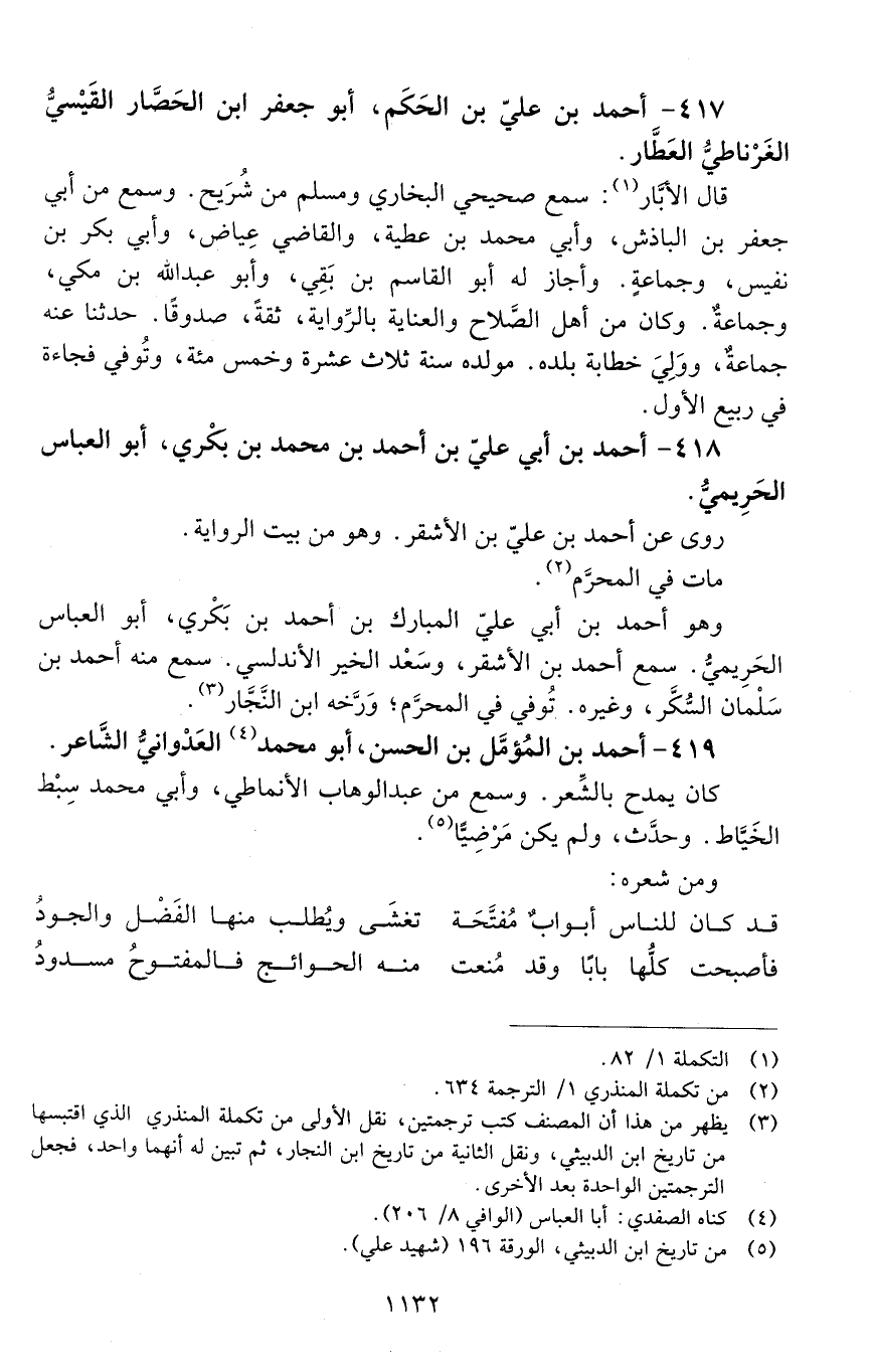 417 - أَحْمَد بْن عليّ بْن الحَكَم، أبو جَعْفَر ابن الحصّار القَيْسي، الغَرْناطي، العطّار. [المتوفى: 598 هـ]