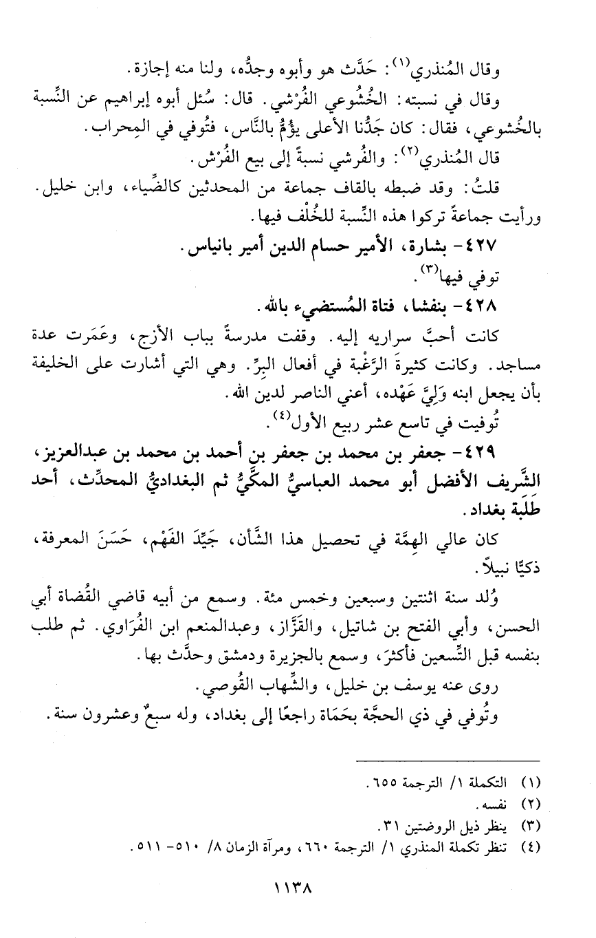 429 - جَعْفَر بْن مُحَمَّد بْن جَعْفَر بْن أَحْمَد بْن مُحَمَّد بْن عَبْد الْعَزِيز، الشّريف الأفضل أبو مُحَمَّد العبّاسيّ، المكّيّ، ثُمَّ الْبَغْدَادِيّ، المحدّث، [المتوفى: 598 هـ]