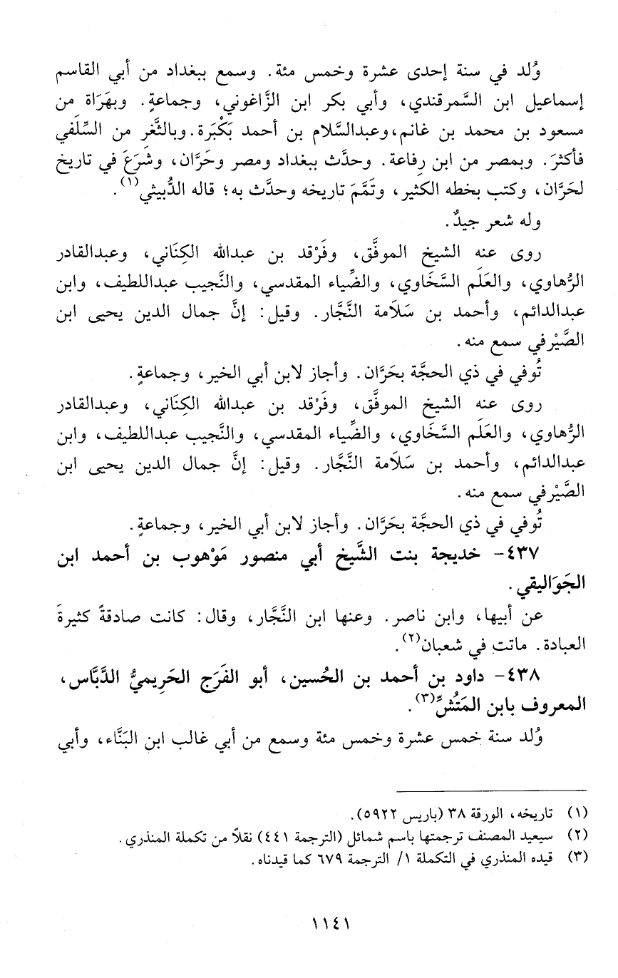 438 - داود بْن أَحْمَد بْن الْحُسَيْن، أبو الفَرَج الحريميّ، الدّبَّاس، المعروف بابن المتش. [المتوفى: 598 هـ]