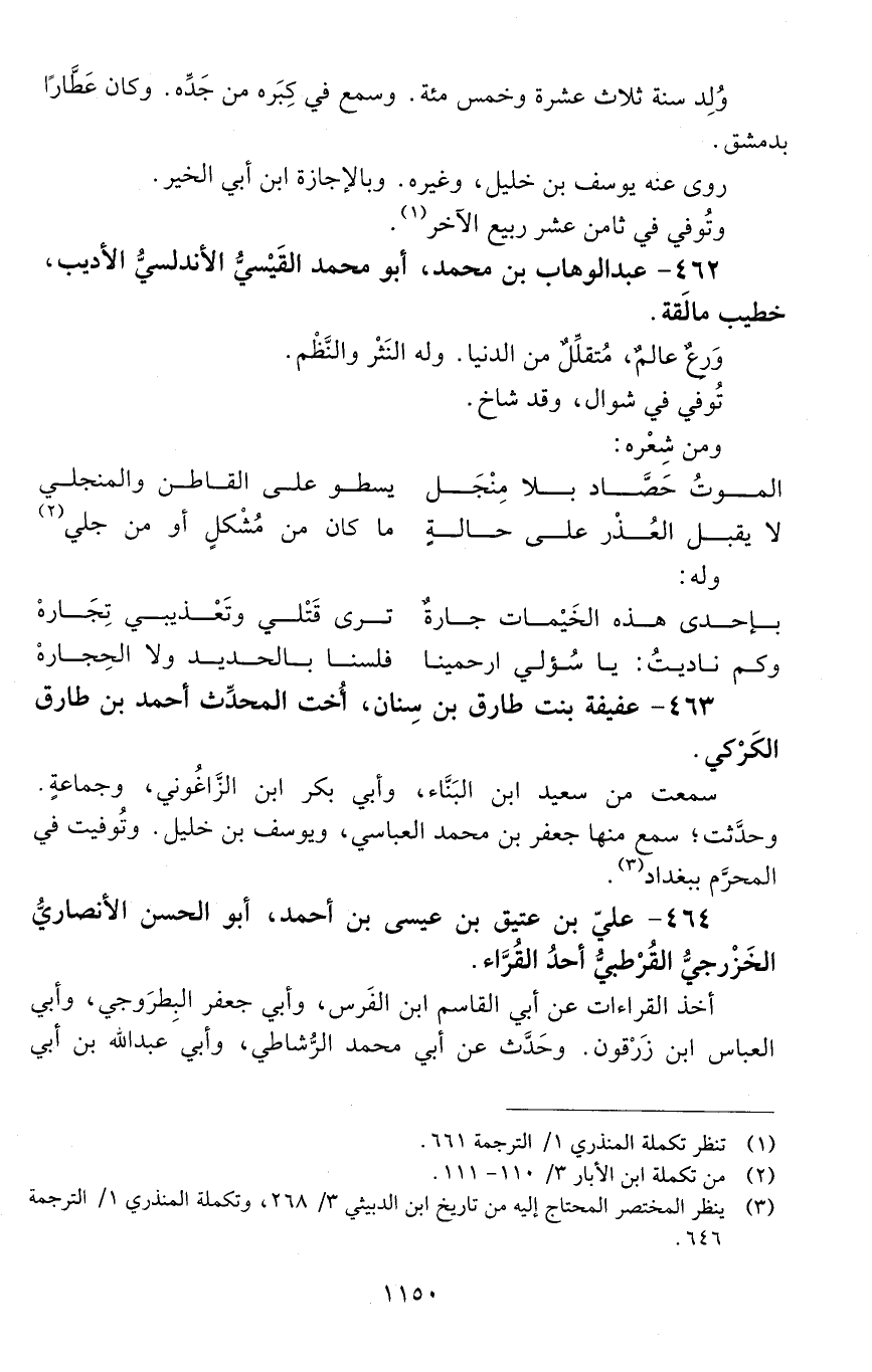 462 - عَبْد الوهّاب بْن مُحَمَّد، أبو مُحَمَّد القَيْسيّ، الأندلسيّ، الأديب، [المتوفى: 598 هـ]