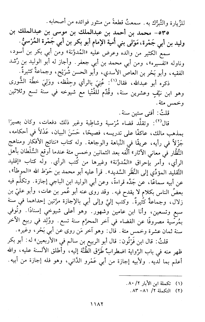 535 - مُحَمَّد بْن أَحْمَد بْن عَبْد الملك بْن موسى بْن عَبْد الملك بْن وليد بْن أَبِي جمرة. [المتوفى: 599 هـ]