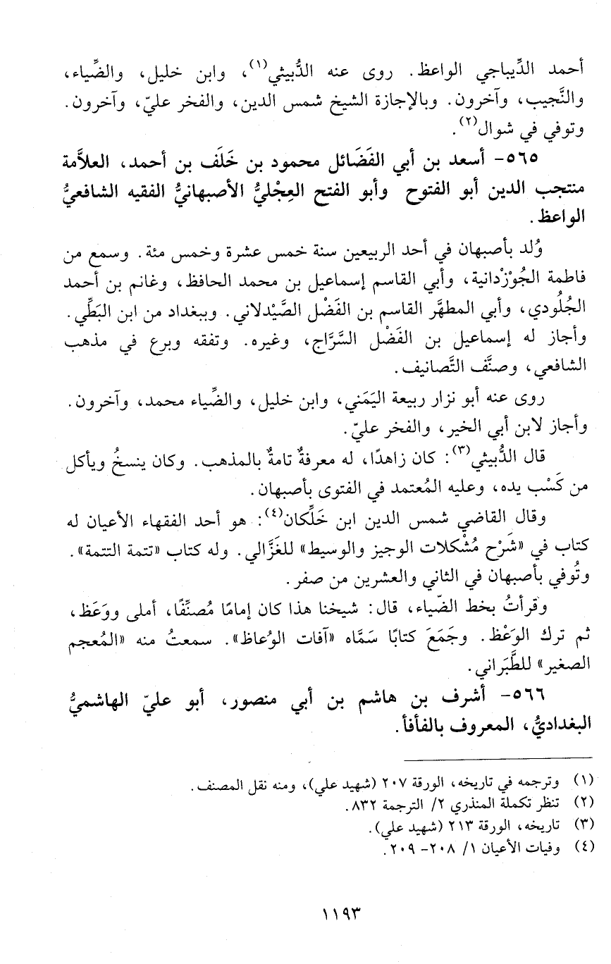 565 - أسعد بْن أَبِي الفضائل محمود بْن خَلَف بْن أَحْمَد، العلّامة منتجب الدّين أبو الفتوح، وأبو الفتح العِجْليّ الإصبهانيّ الفقيه الشّافعيّ الواعِظ. [المتوفى: 600 هـ]