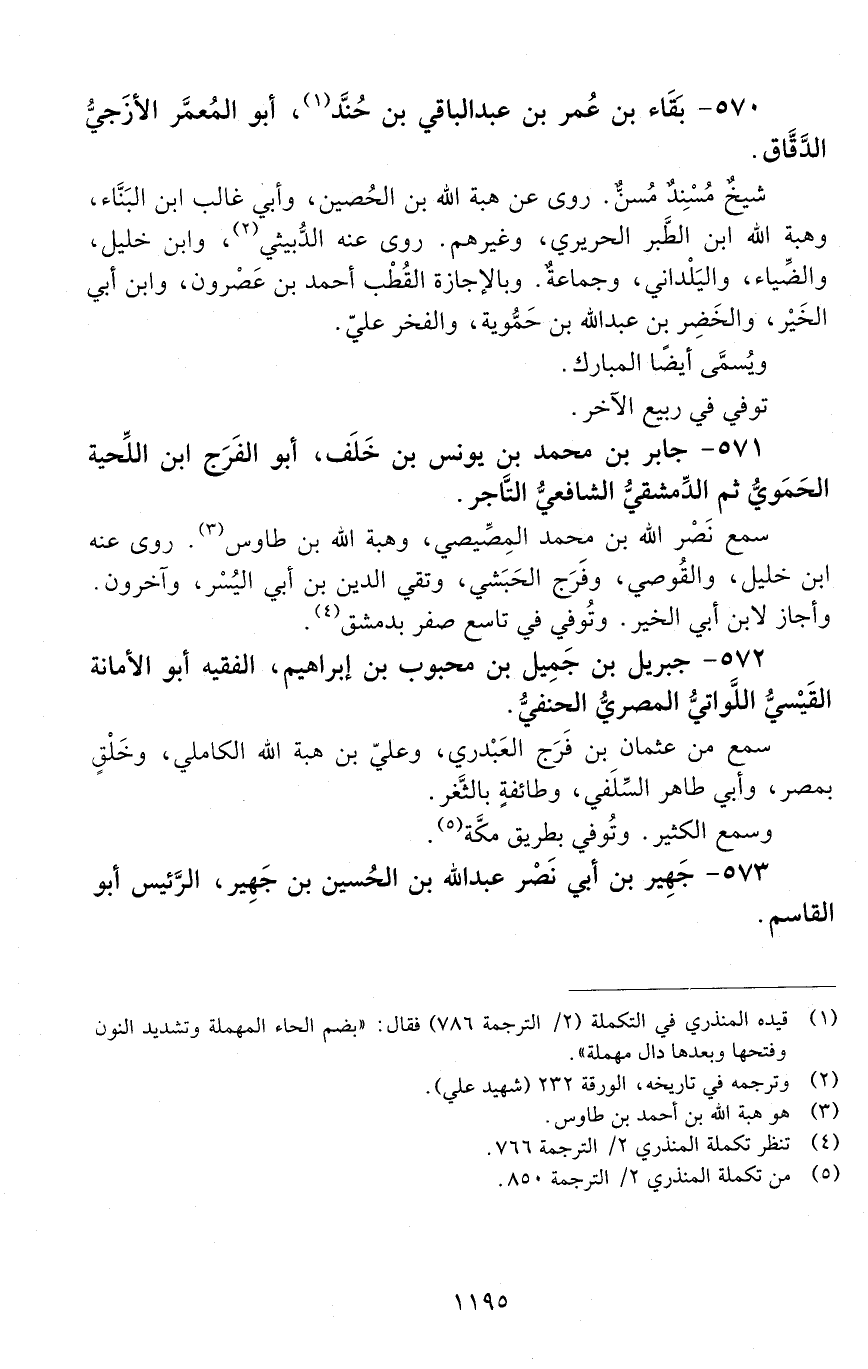 570 - بقاء بْن عُمَر بْن عَبْد الباقي بْن حُنَّد، أبو المعمّر الأَزَجيّ، الدّقّاق. [المتوفى: 600 هـ]