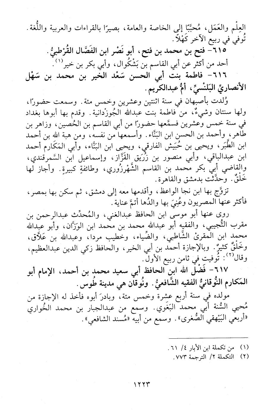 616 - فاطمة بِنْت أَبِي الْحَسَن سعد الخير بْن محمد بن سهل الأنصاري البلنسي، أم عَبْد الكريم. [المتوفى: 600 هـ]