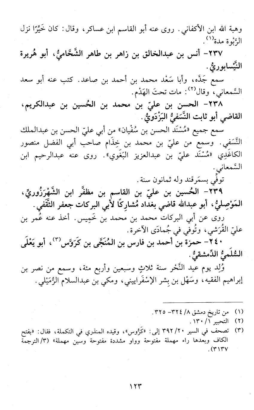 240 - حمزة بن أحمد بن فارس بن المنجى بْن كَرُّوس. أبو يَعْلَى السُّلَميّ، الدّمشقيّ. [المتوفى: 557 هـ]