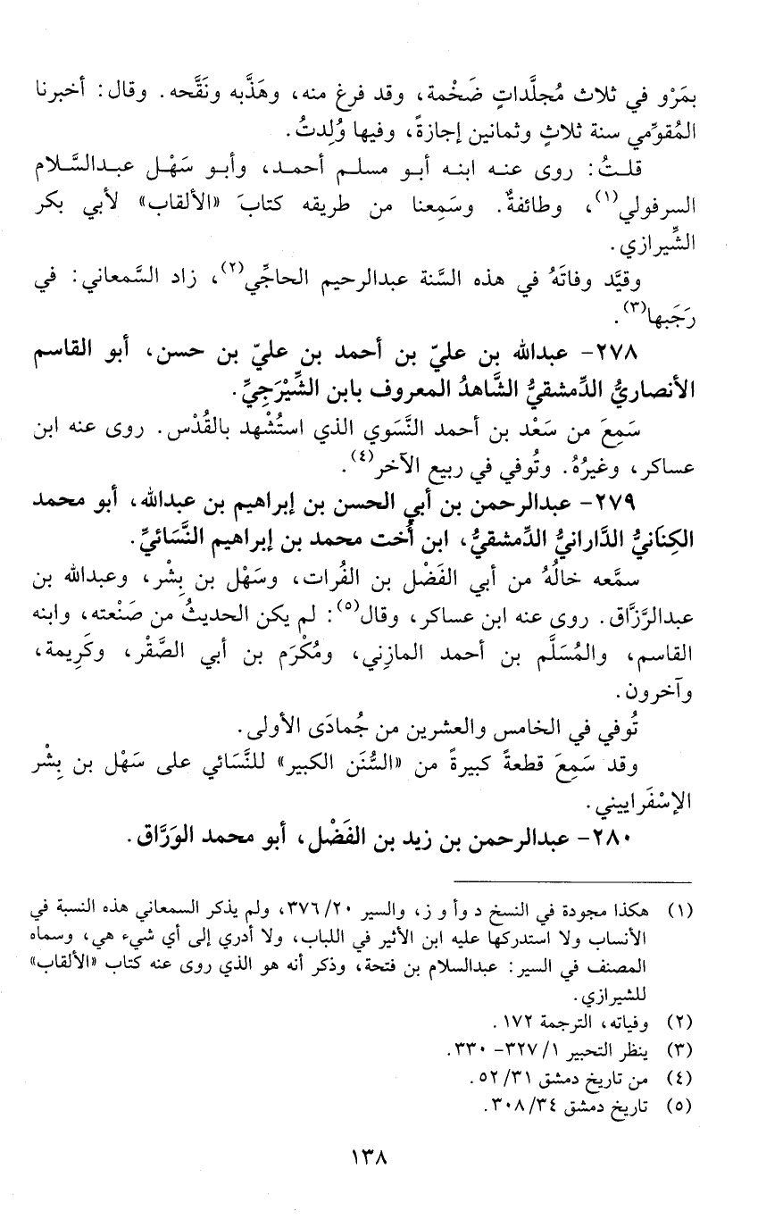 279 - عَبْد الرَّحْمَن بْن أبي الْحَسَن بْن إِبْرَاهِيم بْن عَبْد اللَّه، أَبُو مُحَمَّد الكِنَانيّ الدّارانيّ الدّمشقيّ، [المتوفى: 558 هـ]