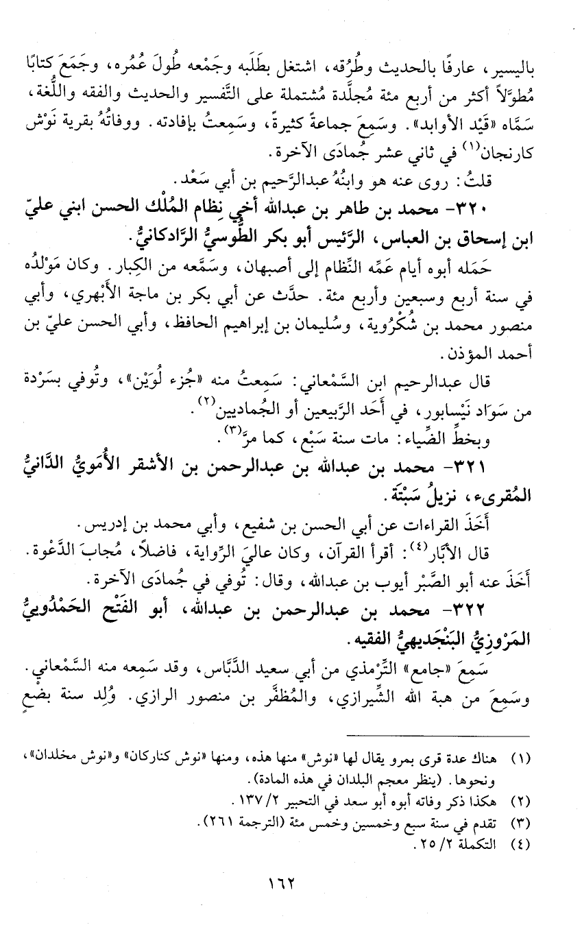 320 - مُحَمَّد بْن طاهر بْن عَبْد الله أخي نظام الملك الحسن ابني عليّ بْن إسحاق بْن الْعَبَّاس، الرئيس أبو بكر الطوسي، الرادكاني. [المتوفى: 559 هـ]