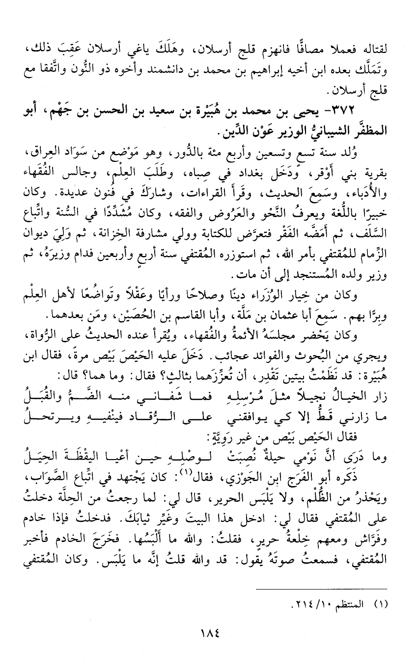 372 - يحيى بْن مُحَمَّد بْن هُبَيْرة بْن سَعِيد بن الحسن بن جهم، أبو المظفر الشيباني الوزير عَوْن الدِّين. [المتوفى: 560 هـ]