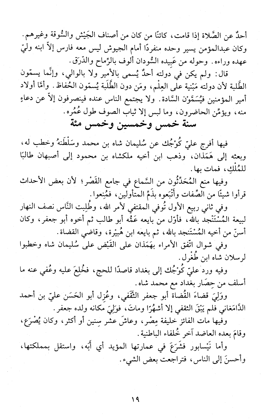 وأمّا نَيْسابور فشرع فِي عمارتها المؤيِّد أي أَبَه، واستقلّ بمملكتها، وأحسن إلى النّاس، فتراجعت بعض الشيء.