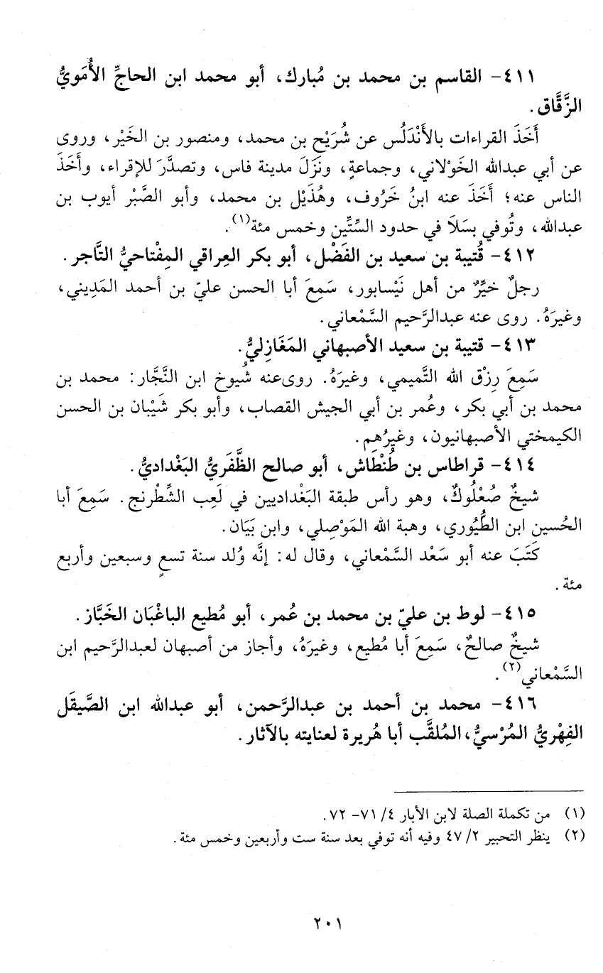 416 - مُحَمَّد بْن أَحْمَد بْن عَبْد الرَّحْمَن، أَبُو عبد الله ابن الصيقل الفهري المرسي، الملقب أبا هريرة لعنايته بالآثار. [الوفاة: 551 - 560 هـ]-[202]-