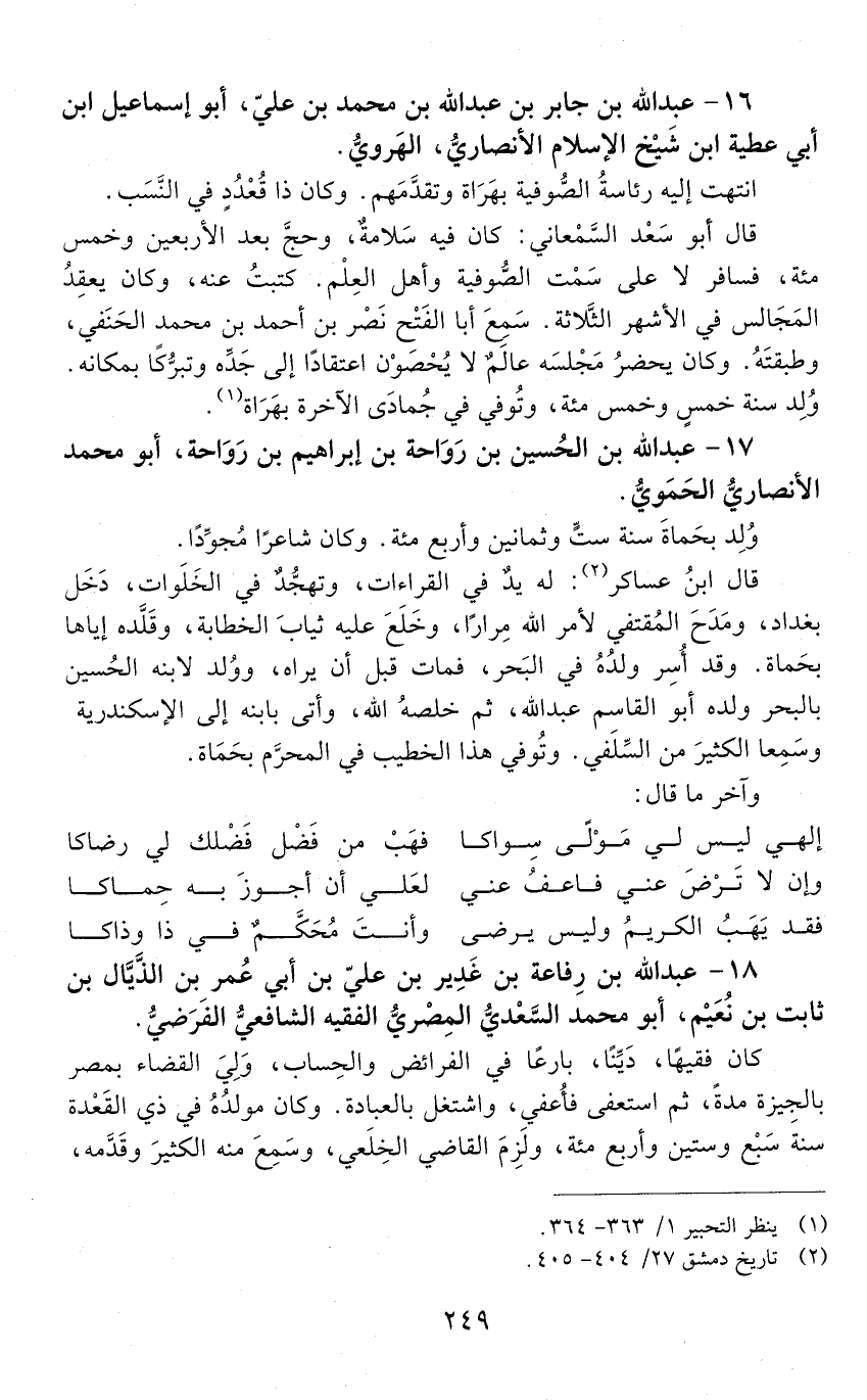 16 - عَبْد اللَّه بْن جَابِر بْن عَبْد اللَّه بْن مُحَمَّد بْن عَلِيّ، أبو إسماعيل ابن أَبِي عطيَّة ابن شيخ الْإِسْلَام الْأَنْصَارِيّ الهَرَويّ. [المتوفى: 561 هـ]