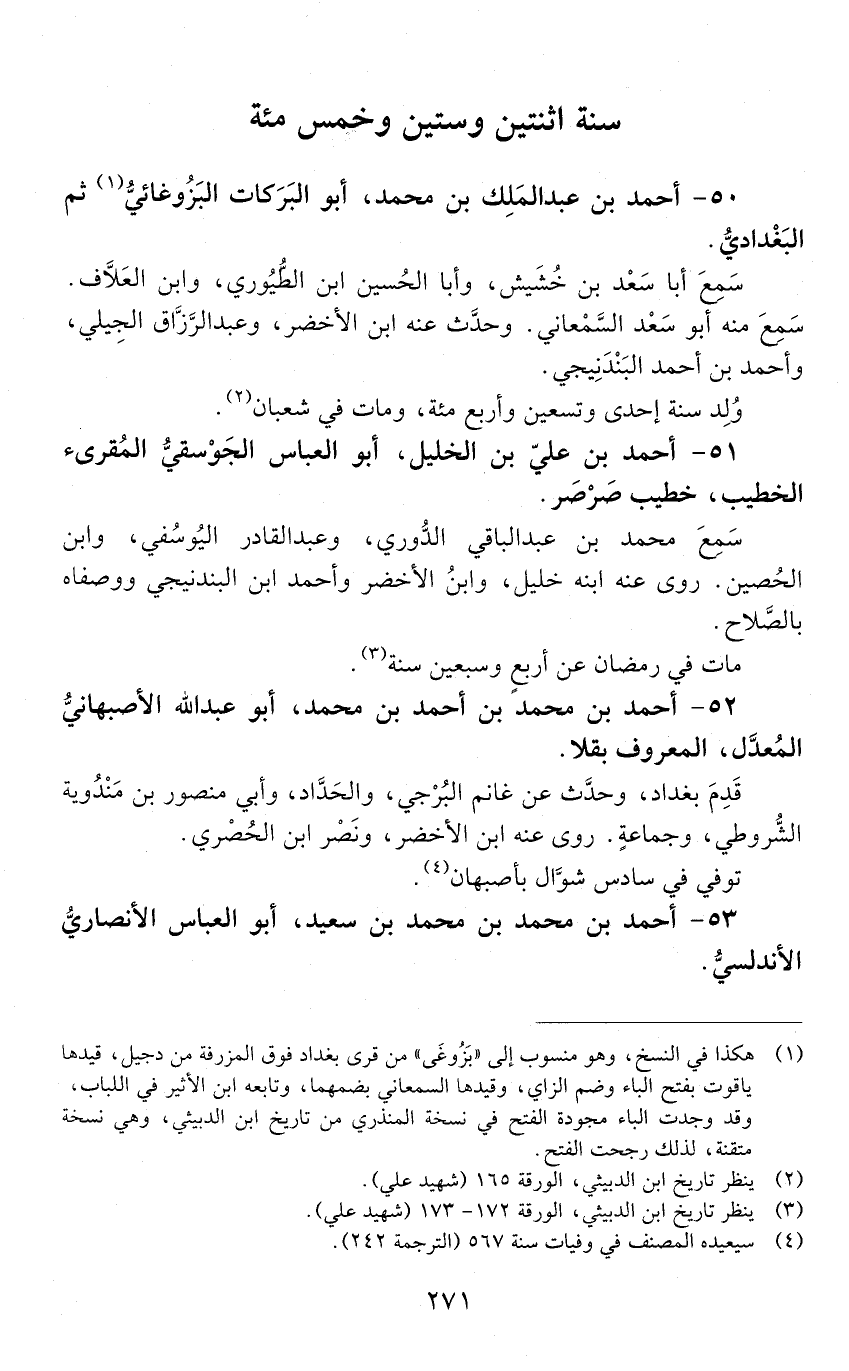 50 - أحمد بْن عَبْد الملك بْن مُحَمَّد، أَبُو البركات البزوغائي ثمّ البغداديّ. [المتوفى: 562 هـ]