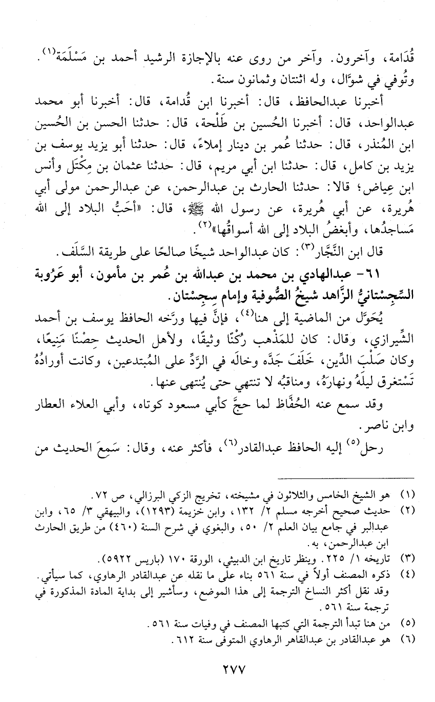 61 - عَبْد الهادي بْن مُحَمَّد بْن عَبْد اللَّه بْن عُمَر بْن مأمون، أَبُو عَرُوبَة السِّجِسْتانيّ الزّاهد [المتوفى: 562 هـ]