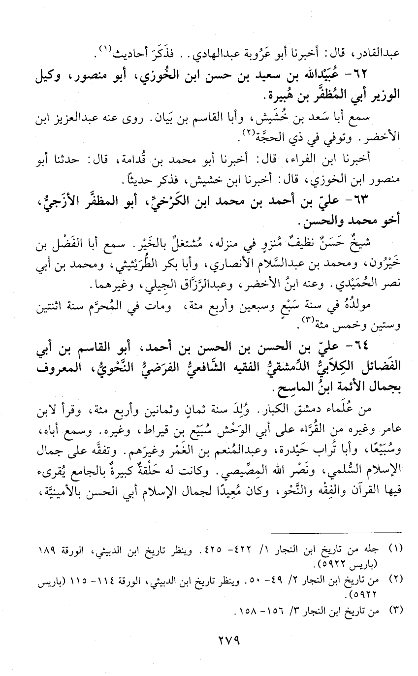 64 - علي بن الحسن بن الحسن بن أحمد، أَبُو القاسم بْن أَبِي الفضائل الكِلابيّ الدّمشقيّ الفقيه الشافعي الفرضي النحوي، المعروف بجمال الأئمة ابن الماسح. [المتوفى: 562 هـ]
