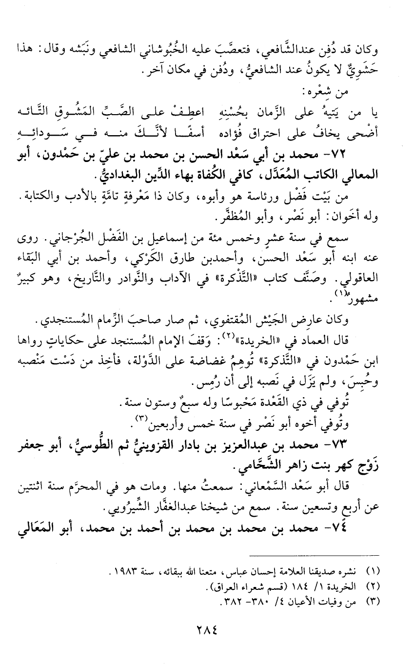 72 - مُحَمَّد بْن أَبِي سعد الْحَسَن بْن مُحَمَّد بْن عَلي بْن حمدون، أَبُو المعالي الكاتب المعدَّل، كافي الكُفاة، بهاء الدّين البغداديّ. [المتوفى: 562 هـ]