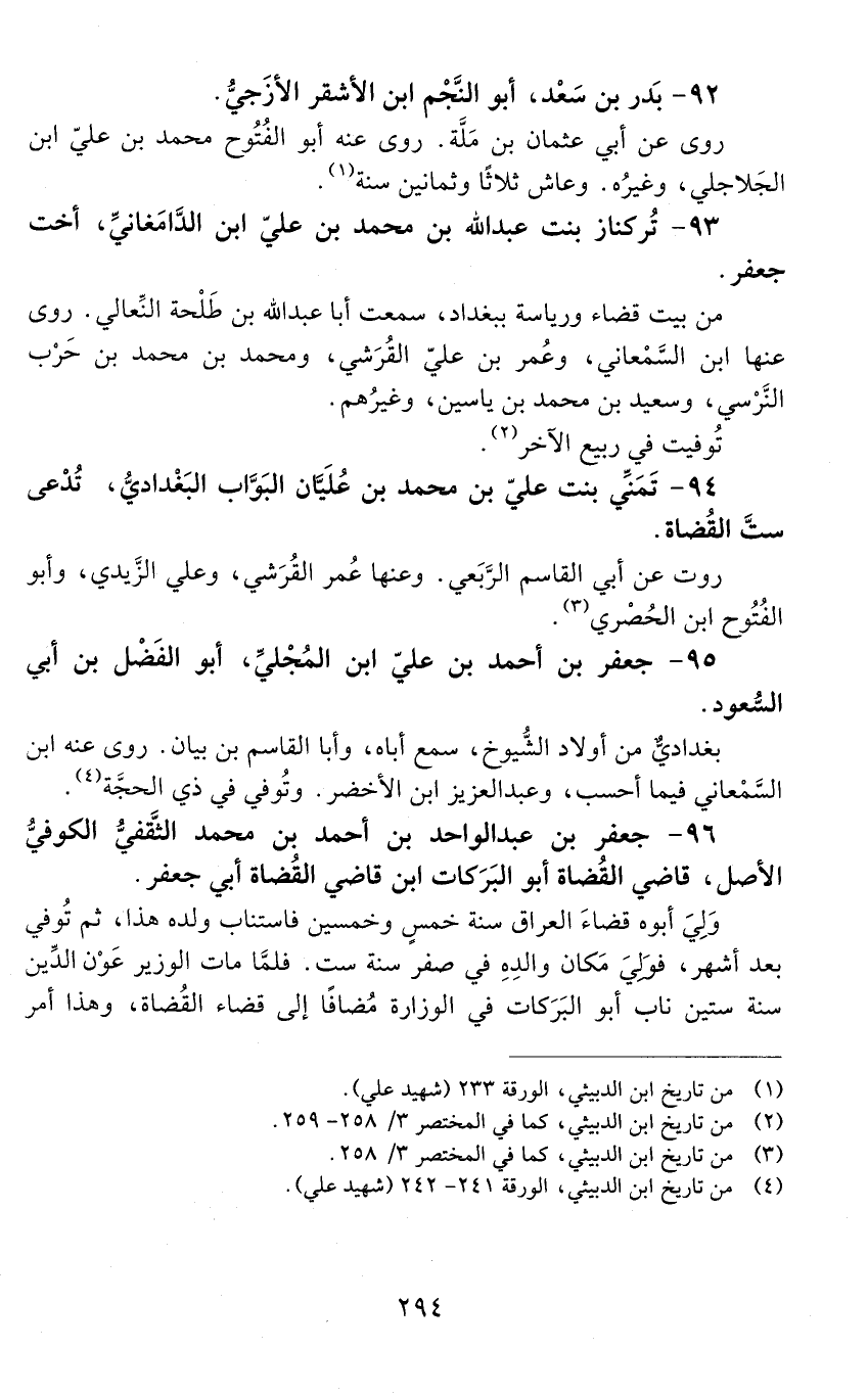 96 - جعفر بْن عَبْد الواحد بْن أَحْمَد بْن مُحَمَّد الثّقفيّ الكوفيّ الأصل، قاضي القُضاة أَبُو البركات [المتوفى: 563 هـ]