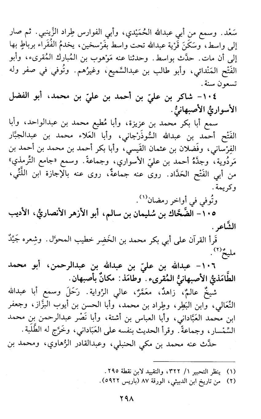 106 - عَبْد اللَّه بْن عَلِيِّ بْن عَبْد اللَّه بْن عَبْد الرَّحْمَن، أبو محمد الطامذي، الأصبهاني، المقرئ، [المتوفى: 563 هـ]