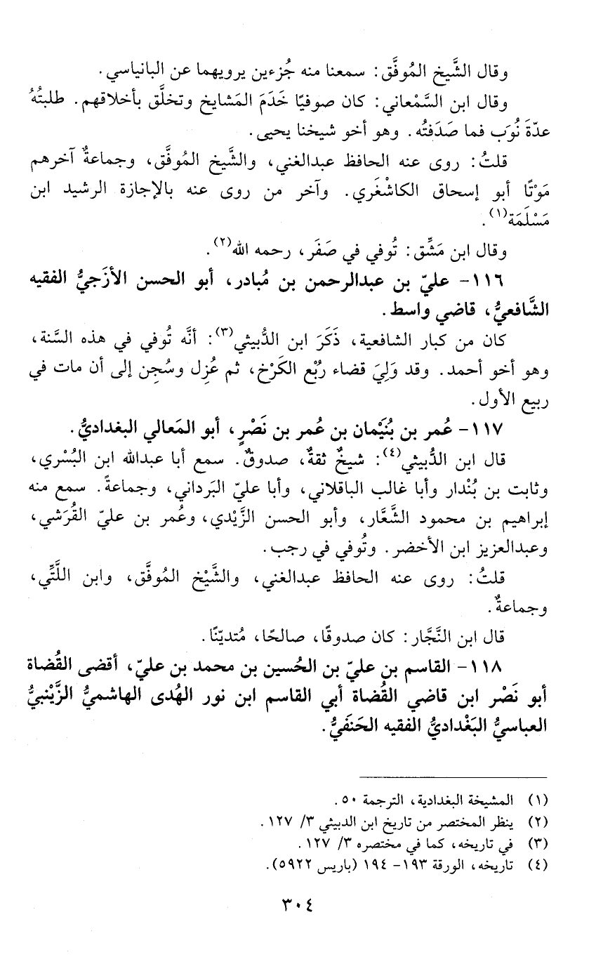 118 - القاسم بْن عليّ بْن الْحُسَيْن بْن مُحَمَّد بْن علي، أقضى القضاة أَبُو نصر ابن قاضي القضاة أبي القاسم ابن نور الهدى الهاشميّ الزَّيْنَبيّ العبّاسيّ البغداديّ الفقيه الحنفي. [المتوفى: 563 هـ]-[305]-