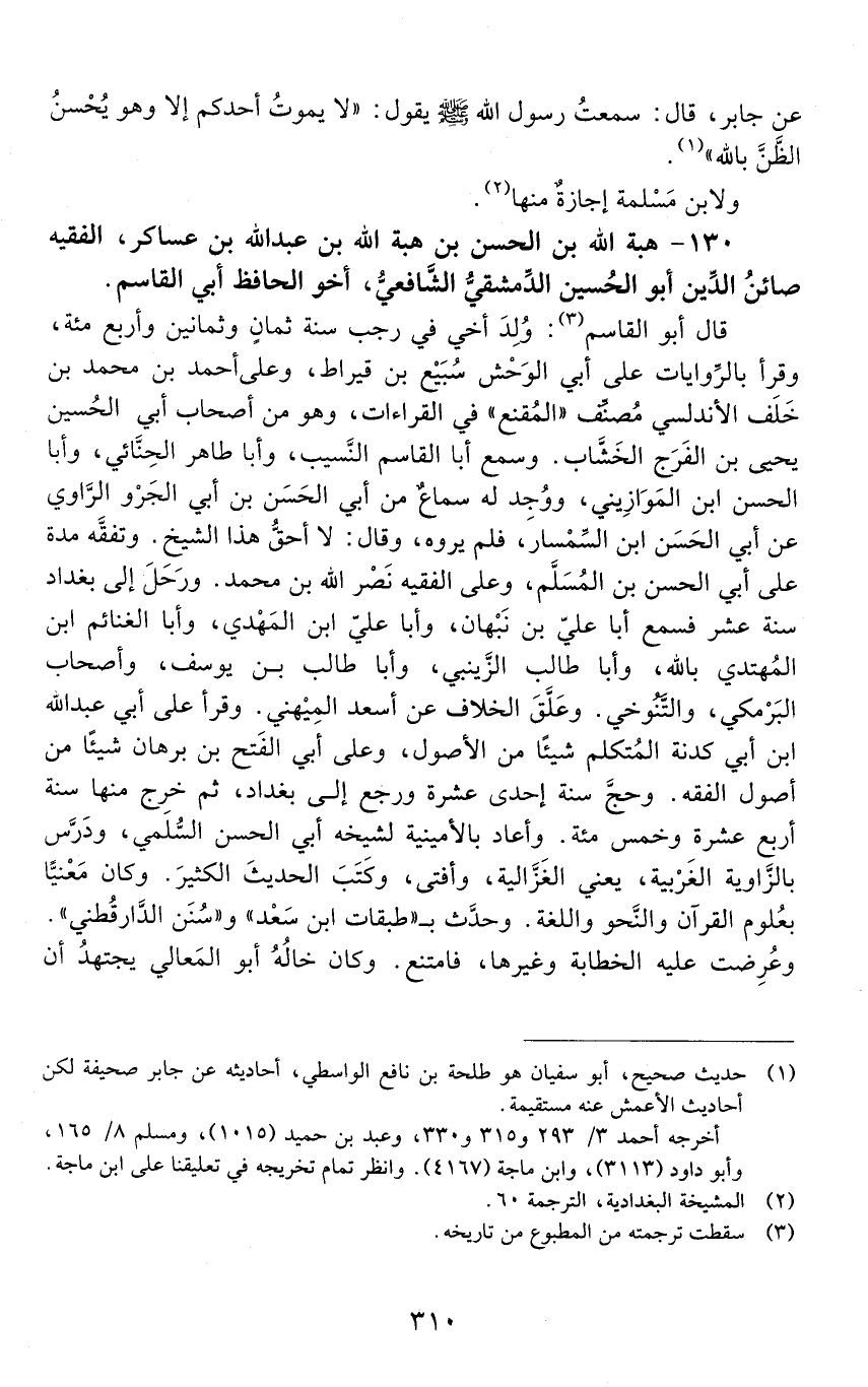 130 - هبة اللَّه بْن الْحَسَن بْن هبة اللَّه بْن عَبْد اللَّه بْن عساكر، الفقيه صائن الدين أبو الحسين الدّمشقيّ الشّافعيّ، [المتوفى: 563 هـ]