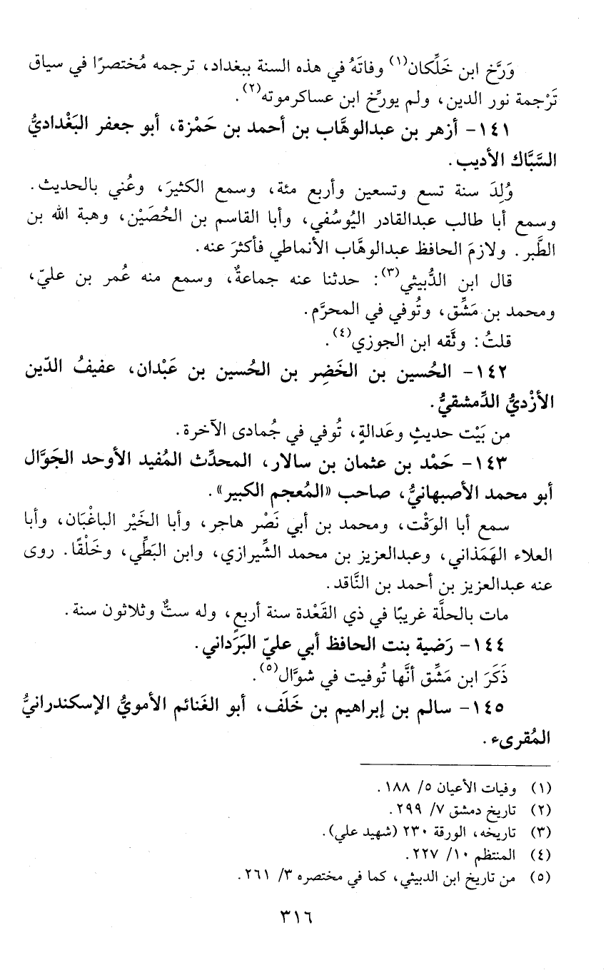 142 - الْحُسَيْن بْن الخَضِر بْن الْحُسَيْن بْن عبدان، عفيف الدّين الْأَزْدِيّ الدّمشقيّ. [المتوفى: 564 هـ]