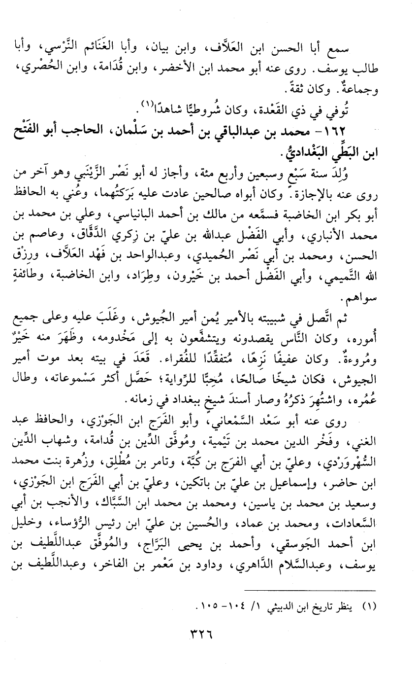 162 - مُحَمَّد بْن عَبْد الباقي بْن أحمد بن سلمان، الحاجب أبو الفتح ابن البطي، البغدادي. [المتوفى: 564 هـ]