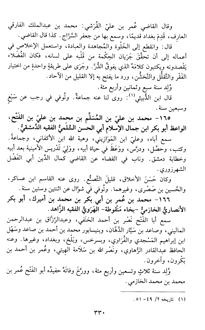 166 - مُحَمَّد بْن عُمَر بْن أَبِي بَكْر بْن مُحَمَّد بْن أميرك، أبو بكر الْأَنْصَارِيّ الخازميّ - بخاء منقوطة - الهَرَويّ الفقيه الزّاهد. [المتوفى: 564 هـ]