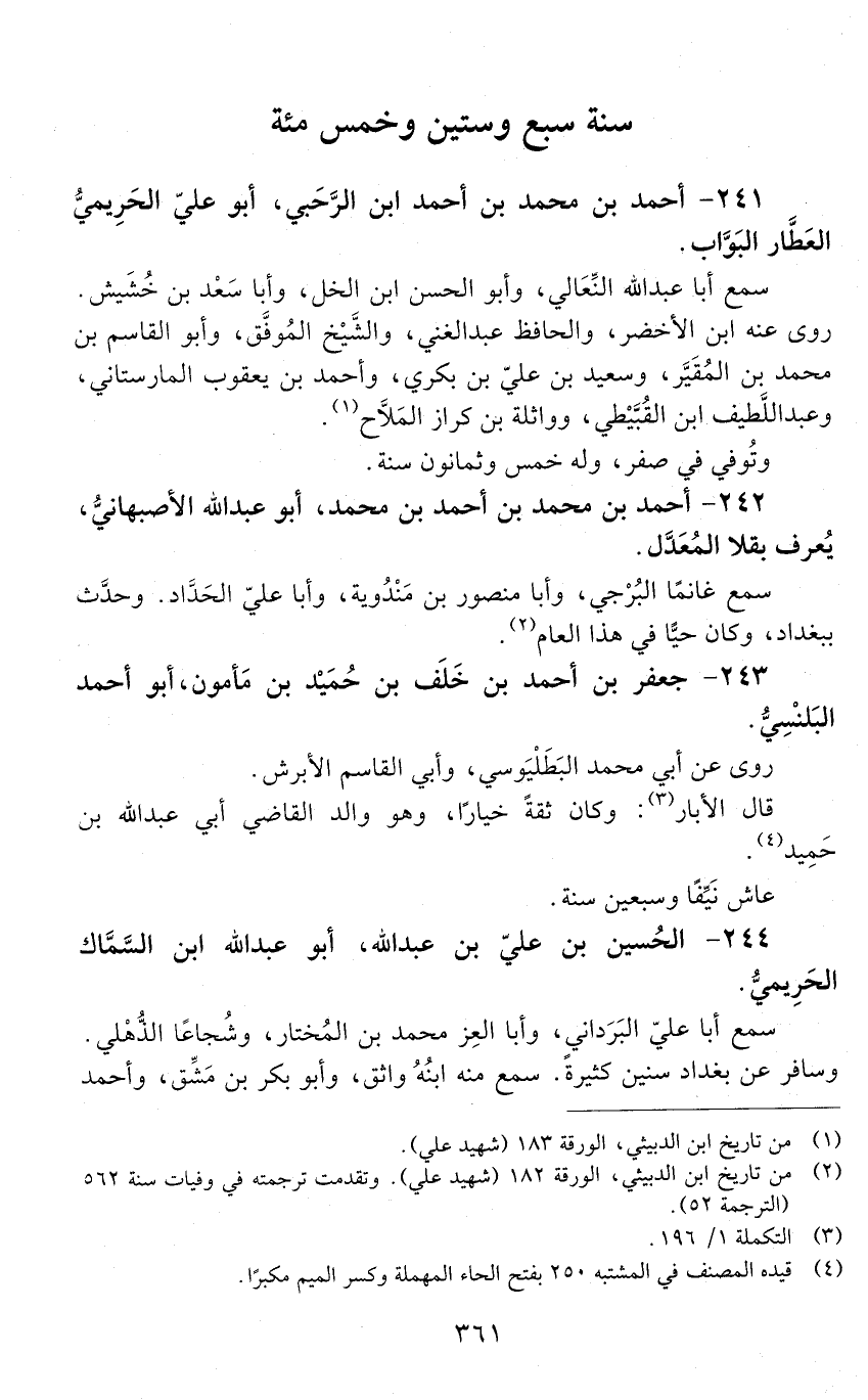 241 - أحمد بن محمد بن أحمد ابن الرَّحبيّ، أَبُو عَلِيّ الحَرِيميّ، العطّار، البوّاب. [المتوفى: 567 هـ]